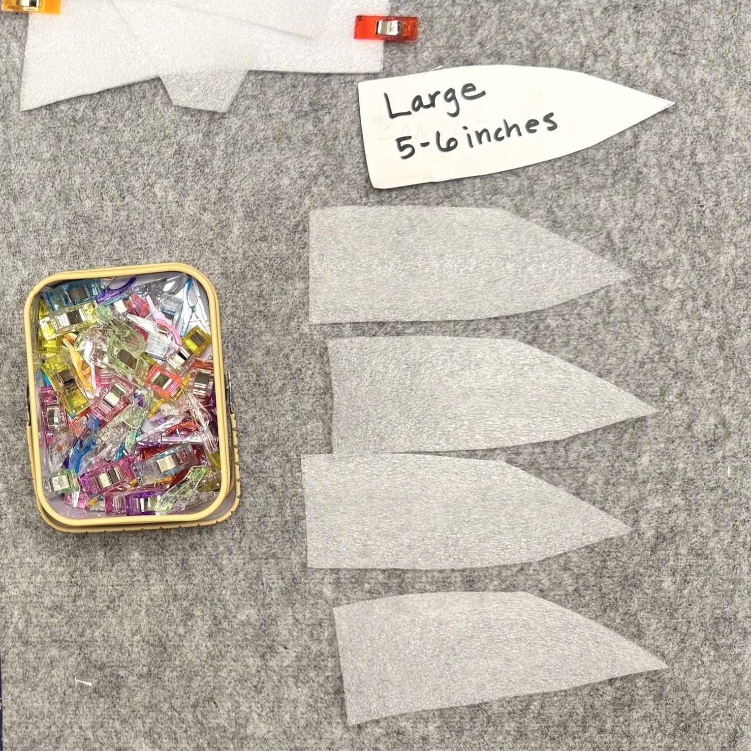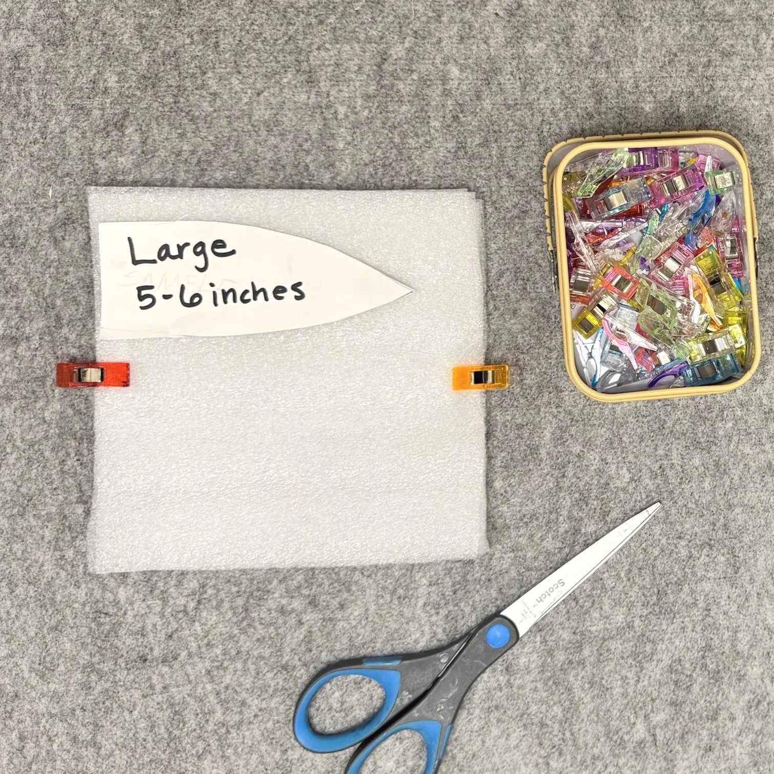 💡 TIP: Cut multiple “feather” layers at the same time—you’ll need more pieces than you think! Stack the Foam Wrap and secure the edges with sewing clips to prevent shifting. I can’t stress this enough… they do NOT have to be perfect. Once everything is assembled, you won’t be able to tell at all.